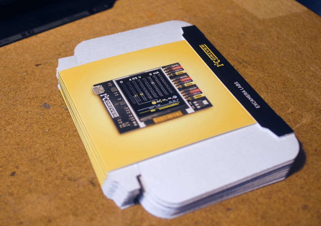 We’re gearing up here at Excamera Labs for the big effort to ship TermDriver2. One part of this is folding boxes. It might not sound like much, but assembling thousands of boxes is surprisingly time-consuming. There is help on hand, but for some time I’ve been thinking about better tooling for box assembly. Last night, folllowing a brief discussion with AI, inspiration struck: