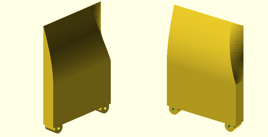 The math for the mandrel shape took some thought. It’s a series of stacked parallelograms. The topmost parallelogram is very flat, the bottom parallelogram is a rectangle. The layers in between smoothly interpolate between these two shapes.