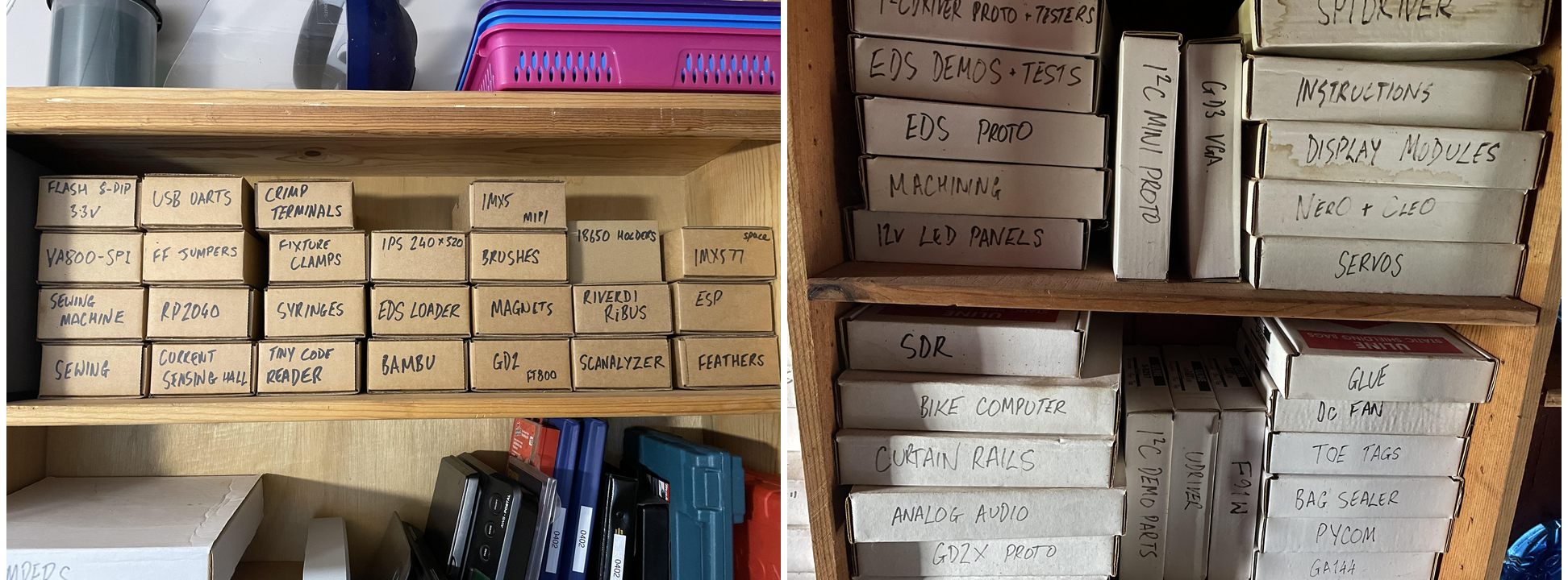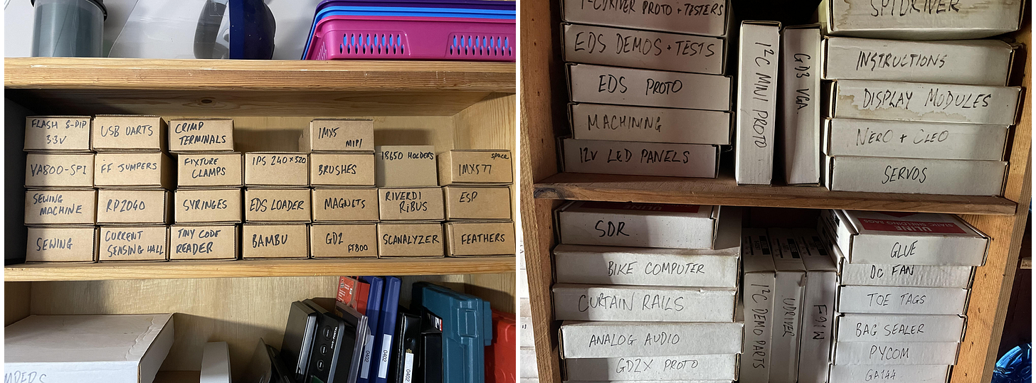 How much time do you spend looking for stuff? For me a few years ago, the answer was “a lot.” Then I started to store items in standard-sized labeled boxes. “Pizza” boxes for larger things. Mailing boxes for smaller things.