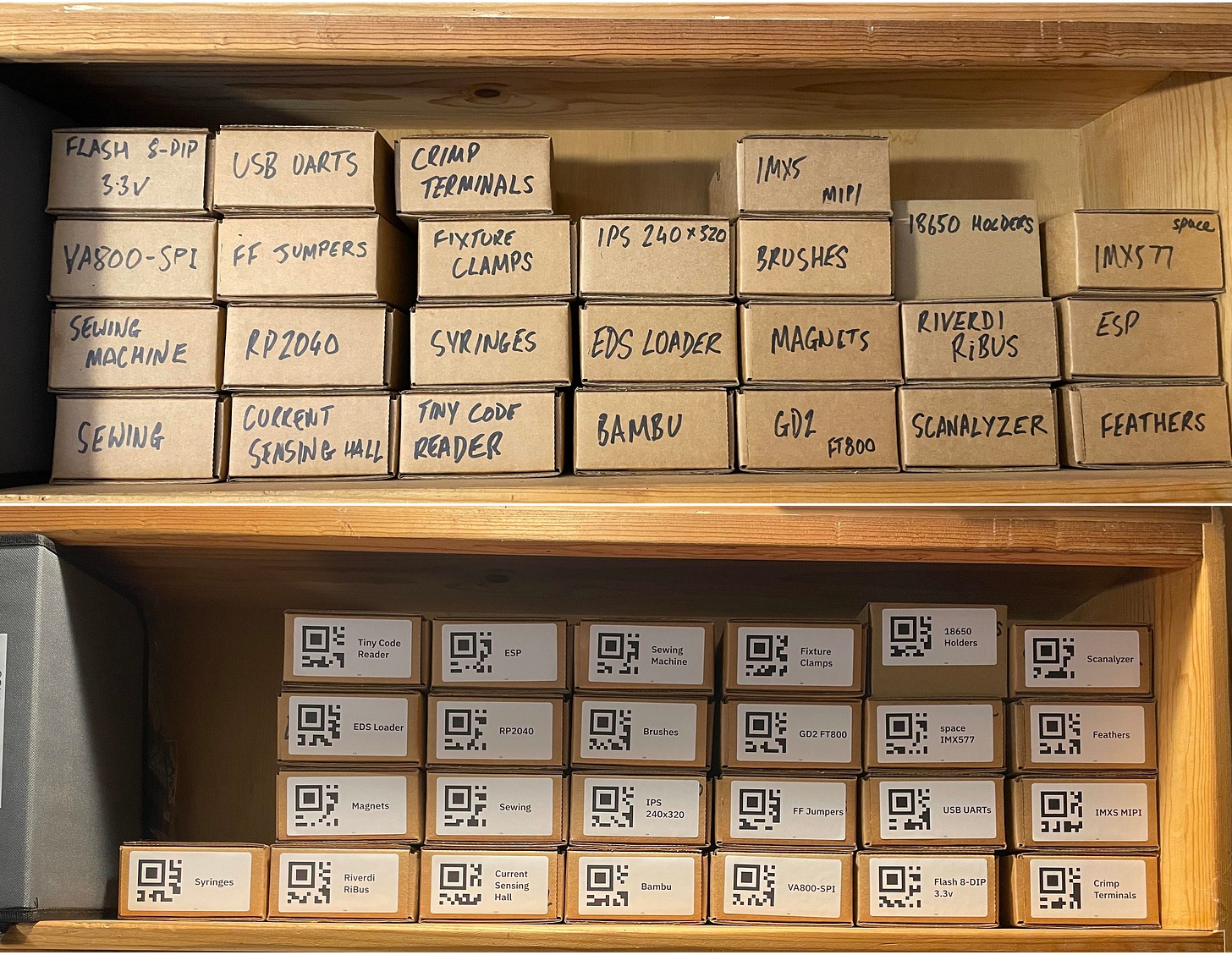 labeling the boxes with printed QR codes